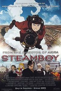 Jetpacks and high-flying airship battles also figure prominently in the 2004 Japanese anime film Steamboy. Set against the backdrop of the Crystal Palace Exhibition in London’s Hyde Park in 1851, the story follows a young inventor boy from the mills of England’s Industrial Revolution to a showdown over technology which threatens the balance of worldwide power. The classic Victorian England setting provides the stage for an ultimate steampunk-themed battle with a massive metal castle-like flying fortress, robots, jet-packed paratroopers and British soldiers fighting to preserve the fate of the British Empire and world peace ahead of the Great War in the coming decades of the early 20th-century.