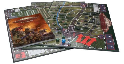 The game involves five play turns with a random number of battles making up each turn. Initiative is rolled before each battle, and targeted objective spaces on the board are chosen to attack. Each player chooses to commit some, all or none of their forces to each battle. Different forces – tanks, guns and airborne infantry – each provide bonuses modifiers in different terrain types. Defenders of areas containing bridges get an extra bonus. Resolving combat is a simple roll of the dice with modifiers added. Defeated forces roll to be destroyed or retreat to adjoining areas, and then the next initiative is rolled for. Once a round of battles is completed, strategic moves can be made and the Allied player has the option to air-drop additional forces and supplies into designated areas of the board. The Axis player can then choose to attempt to fend off the Allied air support with their own air power. Keeping supply lines intact is key to the Allied strategy, as forces which are cut-off from their line of supply suffer a greater weakness in subsequent battles.