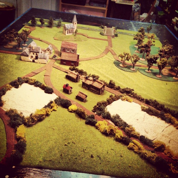 The scenario’s goals call for the US Airborne to take the bridge and center of town with the Germans playing a defensive game, all within the six turn time limit. Since the Allies are at a pretty clear historical disadvantage in the scenario, I modified the game’s terrain to include some additional bocage and cover at the American end of the table to help balance the game.