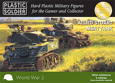 Coincidentally, the Plastic Soldier Company has recently been expanding its small but growing line of 1/72 and 15mm WWII hard plastic infantry, vehicle and armor sets. At nearly half the price of the FOW offerings, the 15mm Plastic Soldier Company boxed sets look to be a legitimate bargain alternative. As luck would have it, among their new releases from the past month was a 15mm Allied Stuart set containing five models which make up a perfect light tank platoon for my FOW force.