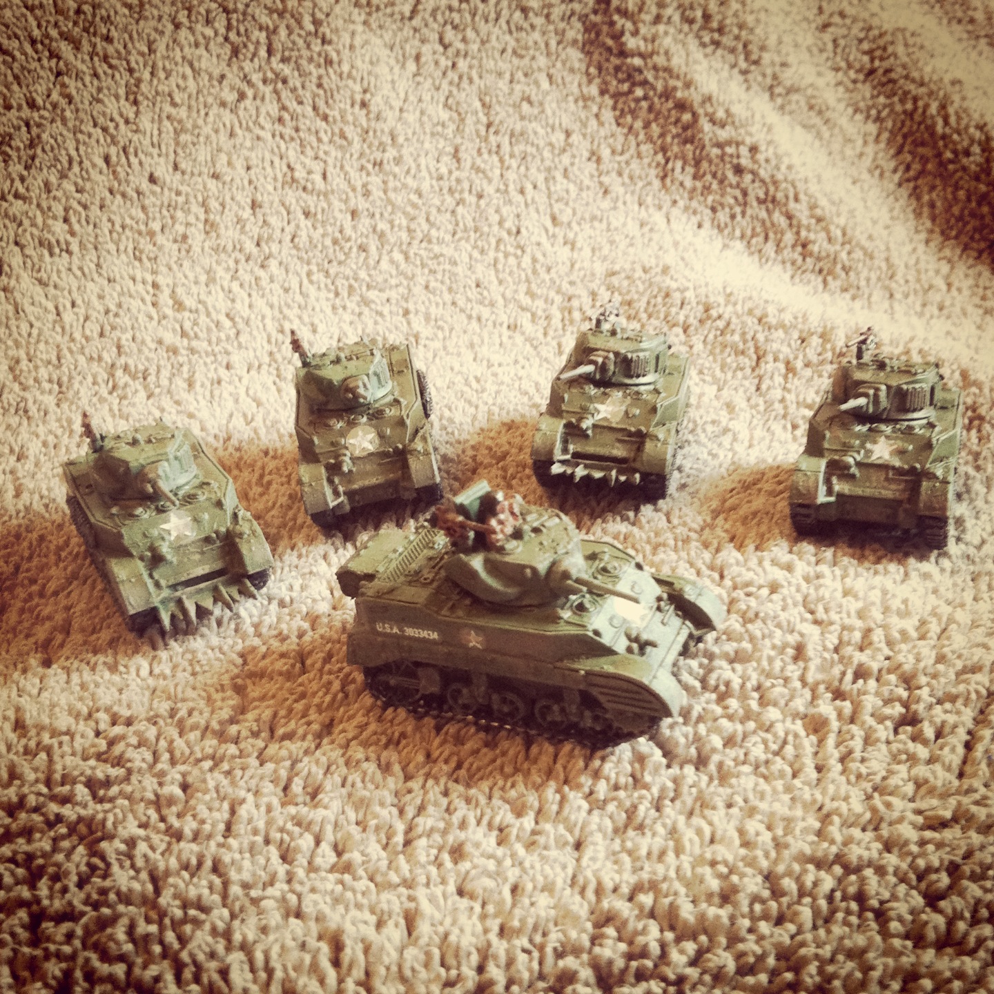 Most of the US armor I use in Flames of War gaming comes directly from Battlefront, the makers of the popular 15mm WWII wargame. Battlefront manufactures beautiful models but the company is often criticized for its prices. I already own a fair number of Battlefront’s M4 Sherman tank models. With so much of my armor tied up in the sameness of my Sherman platoons, I’ve long wanted to add some diversity in my force with a light tank platoon option.