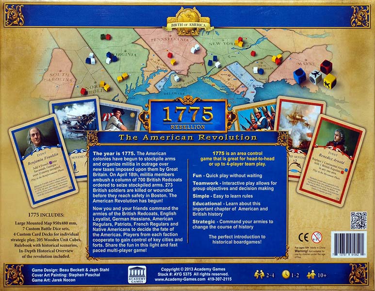 This past weekend I had an opportunity to play 1775 for the first time, and if you’ve got a passion for board games and American history like me, you need to give this one a try yourself.