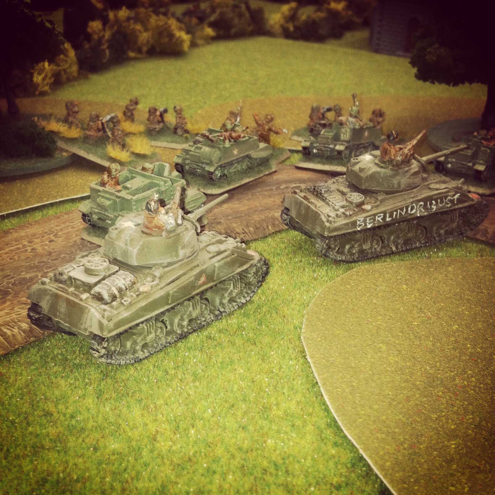 In our Lingevres game, the British simply didn’t have enough units to create a critical mass to advance into town under what was sure to be withering fire from the Germans. We decided we liked the scenario, but perhaps the British needed a 50% increase in points, perhaps with additional rifle and tank platoons and a Typhoon providing air support.