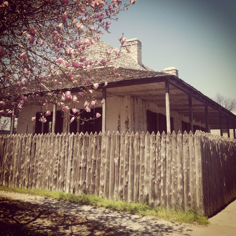 Over the Easter weekend, I visited my in-laws in St. Louis and St. Charles, Missouri. After a bit of time in and around St. Louis, we headed south along the Mississippi River to Ste. Genevieve. Settled in the 1730s, Ste. Genevieve showcases a remarkably intact collection of distinctive French colonial-influenced buildings. We were particularly fortunate in being allowed to walk through the Bequette-Ribault House which I had read about in one of my graduate school classes. The building was under renovation, allowing us to view a rare surviving example of the “poteaux en terre” construction technique of posts sunk vertically into the ground.