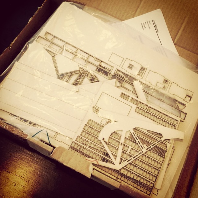 The Pegasus Bridge model shipped in plastic bag folded into a flat, short cardboard box which had definitely shown some wear and tear during its journey from Germany to Brooklyn. Some pieces of the model had come loose from the MDF sheets during transit, but everything was there and unbroken. The rest of the model was easily punched or carefully cut out using a fresh blade in a hobby knife. With all the parts cut out, I sorted them on a tray to get a handle on the task of things before me. The model does not ship with assembly instructions, but they are available for download once registered to the Najewitz Modellbau website. The instructions are pretty spare, relying on simple wordless graphics and some imagination to put all the pieces together. I found referring to historic and contemporary images of the bridge online was just as helpful as the actual manufacturer instructions. Since there were no images online of the bridge being constructed, I decided to offer up a visual step-by-step for others looking to add this model to their terrain collection.