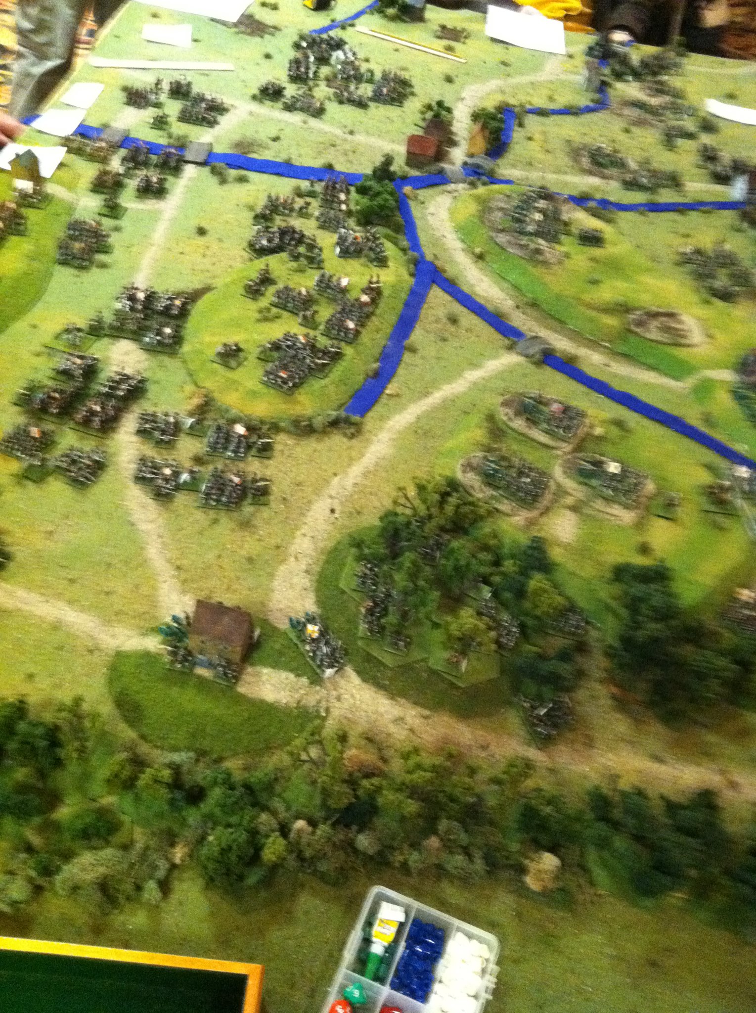 The Metropolitan Wargamers from Brooklyn, NY installed their prize-winning sand table for some highly-stylized and very playable WWII scenarios. The guys from the club arrived in Lancaster, bought the necessary materials at a nearby Home Depot and installed the table for the weekend, sculpting hills, roads and trenches out of sand, coffee and flour. Playing these scenarios really brought back the hours I would spend in the sandbox as a kid with hundreds of cheap green plastic army men.