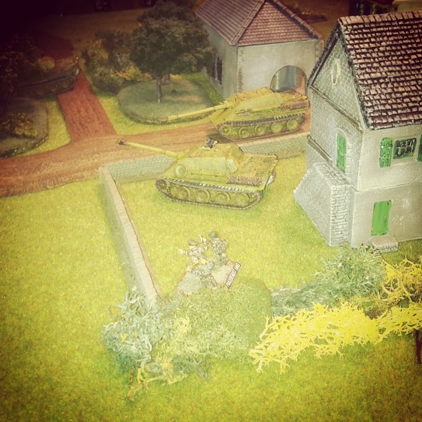 German armor continues to roll to a second objective crossroads at the rear