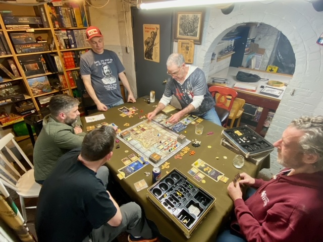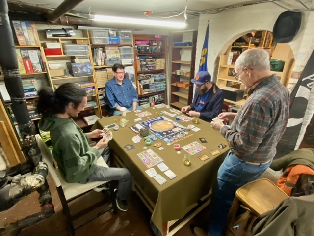 While miniatures, including WWII, ACW, French & Indian War, Robotech, Epic 40K, Star Wars: Legion and Marvel: Crisis Protocol, have been played recently, most of the club’s gaming interests have moved toward a focus on modern board games and wargames in the past 10 years. RPGs have also continued to have a small but consistent presence at the club throughout its history.