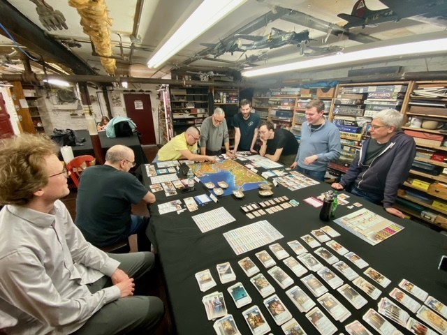 Over its history, MWG has also been an incubator for game design and playtesting. A number of our earliest members spent time at the offices of SPI here in NYC in the 70s and 80s playtesting now-classic games. The club has included prominent designers in its membership, including Adam Starkweather (IGS, MMP) and Carl Fung (SCS and BCS, MMP), newer designers like Mike Willner (Prelude to Revolution, Compass Games) and Mike Lorino (Seminal Catastrophe, Vuca Simulations), and GMT Games Art Director Justin Martinez.