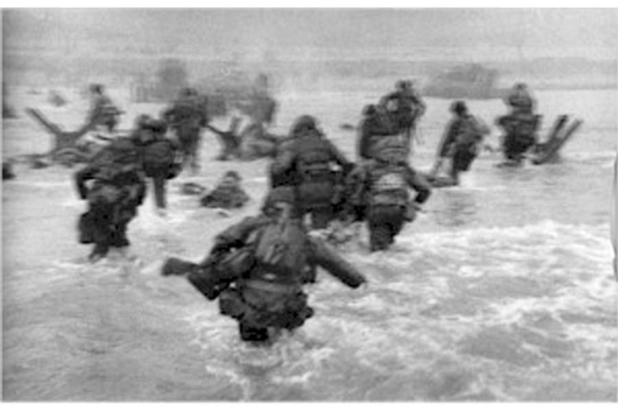 US infantry blinds move toward unsuspecting German defenders at a farm outside Vierville