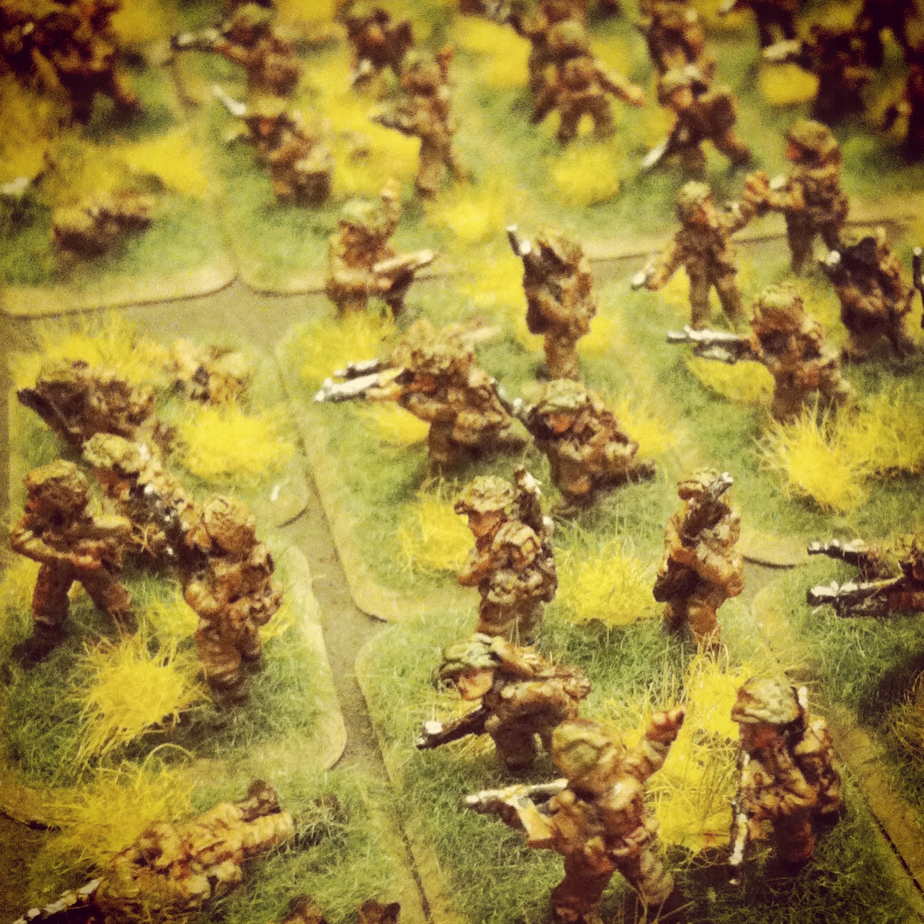 Trees are one of the standard needs for any miniatures wargaming table in any era. Several wargaming manufacturers offer boxes of pre-made tree stands and bases for around $35-40 for maybe a dozen trees. I choose to go the economic bulk route and make my own using trees, flocking and modelling details from Woodland Scenics. For about $75 I’ve been able to make more than enough to fill even the largest battlefields.